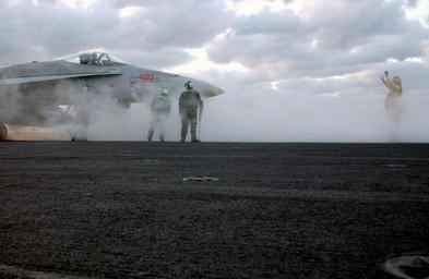 Keywords: Navy Flight Deck Director guides FA-18C Hornet