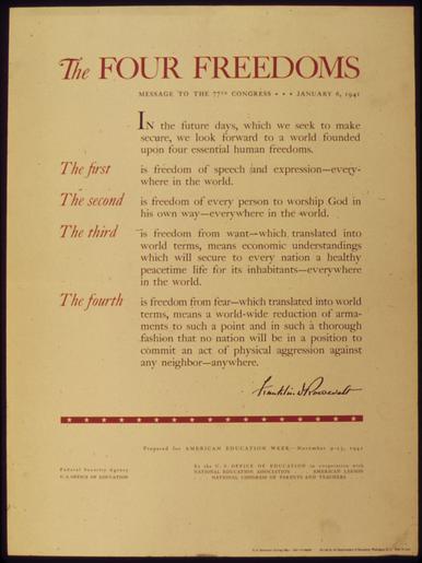 | Keywords: THE FOUR FREEDOMS - MESSAGE TO THE 77TH CONGRESS - NARA - 515601.tif Scope and content General notes 515601 Local identifier 44-PA-1918 Office for Emergency Management Office of War Information Domestic Operations Branch Bureau of Special Services 03/09/1943 - 09/15/1945 Still Picture Records Section Special Media Archives Services Division NWCS-S National Archives at College Park 8601 Adelphi Road College Park MD 20740-6001 1941 - 1945 Record group Record Group 44 Records of the Office of Government Reports 1932 - 1947 Record group ARC 373 World War II Posters compiled 1942 - 1945 Series ARC 513498 File unit File unit ARC Variant control numbers NAIL Control Number NWDNS-44-PA-1918 yes Other versions <gallery> File THE_FOUR_FREEDOMS_-_MESSAGE_TO_THE_77TH_CONGRESS_-_NARA_-_515601 tif tif File THE_FOUR_FREEDOMS_-_MESSAGE_TO_THE_77TH_CONGRESS_-_NARA_-_515601 jpg jpg </gallery> NARA-cooperation PD-USGov World War II posters from the United States NARA TIF images with categorized JPGs |