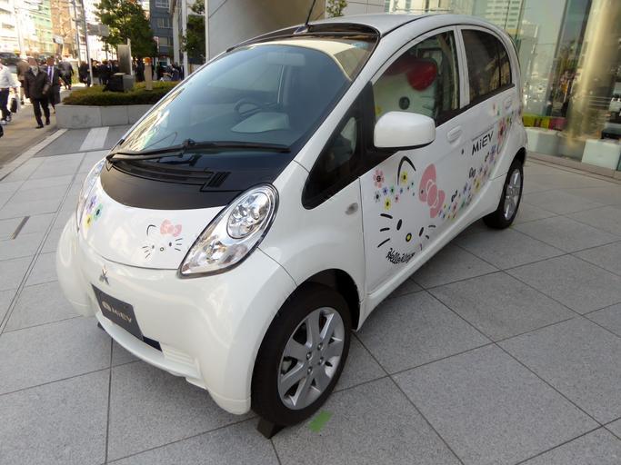 Keywords: The frontview of Mitsubishi i-MiEV (HA4W) Hello Kitty.JPG ja HA4W型三菱・i-MiEVのハローキティ仕様をフロントから撮影 2015-03-27 13 45 43 own Tokumeigakarinoaoshima other versions cc-zero Uploaded with UploadWizard Mitsubishi i MiEV Hello Kitty vehicles