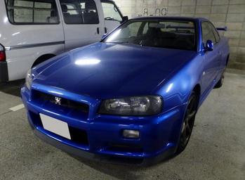 Keywords: The frontview of Nissan SKYLINE GT-R V-spec (BNR34).JPG ja BNR34型日産・スカイラインGTーRをフロントから撮影 2014-04-16 12 48 42 own Tokumeigakarinoaoshima 100px cc-zero Uploaded with UploadWizard Nissan Skyline R34 GT-R Blue coupes