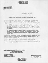 | Keywords: The FY 1986 CHARIOTEER Nuclear Test Program - NARA - 198307.jpg Scope and content General notes 198307 Local identifier President 1981-1989 Reagan National Security Council 1981 - 1989 Ronald Reagan Library NLRR 40 Presidential Drive Simi Valley CA 93065-0600 1985-09-30 Record group Collection RR-NSC Numbered National Security Policy Papers 1981 - 1989 Record group ARC 1189 National Security Decision Directives compiled 02/25/1981 - 01/19/1989 Series ARC 198166 File unit File unit ARC Variant control numbers NAIL Control Number NLS-NSC-NSDD-190 Other versions <gallery> File The_FY_1986_CHARIOTEER_Nuclear_Test_Program_-_NARA_-_198307 tif tif File The_FY_1986_CHARIOTEER_Nuclear_Test_Program_-_NARA_-_198307 jpg jpg </gallery> NARA-cooperation PD-USGov Operation Charioteer Presidential Decision Directives Reagan |