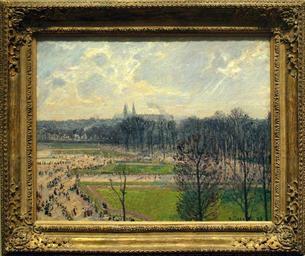 | Keywords: The Garden of the Tuileries on a Winter Afternoon.JPG Artwork Creator Camille Pissarro hu Pissarro festménye a New York-i Metropolitan Múzeumban 1899 Oil on canvas cm 73 3 92 4 Institution Metropolitan Museum of Art Gallery 820 object history exhibition history credit line Gift from the Collection of Marshall Field III 1979 Signed and dated lower right C Pissarro 99 accession number 1979 414 110001760 PD-old-100 DEFAULTSORT Pissarro Garden of the Tuileries on a Winter Afternoon 1979 414 The Garden of the Tuileries on a Winter Afternoon by Camille Pissarro Paintings by Camille Pissarro in the Metropolitan Museum of Art |