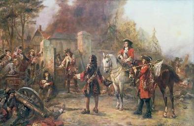 | Keywords: The Garrison of the Village had at Last Surrendered.png en Oil on canvas Scene depicts the surrender of the French garrison at the village of Blindheim Blenheim during the Battle of Blenheim 1704 Late 19th century http //www kunst-fuer-alle de/english/fine-art/shop/home/index htm Robert Alexander Hillingford PD-Art Paintings of battles Images from kunst-fuer-alle de Robert Alexander Hillingford | ||||
