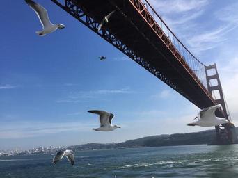 Keywords: the golden gate bridge united states seagull blue sky white cloud sea