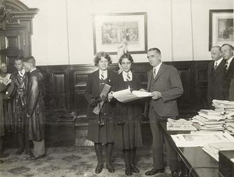| Keywords: archives state records nsw staterecordsnsw newsouthwales blackandwhite goodwill message goodwillmessage people schoolchildren minister office leathercoat monochrome black and white Title: The Goodwill Message at the Education Dept. Winnie Cutler (left) and Beryl Lamble Fort St Girls High School) with Mr Davies, Minister for Education Dated: 17/03/1932 Digital ID: 12685_a007_a00704_8734000153r Rights: www.records.nsw.gov.au/about-us/rights-and-permissions We'd love to hear from you if you use our photos/documents. Many other photos in our collection are available to view and browse on our website using Photo Investigator. Title: The Goodwill Message at the Education Dept. Winnie Cutler (left) and Beryl Lamble Fort St Girls High School) with Mr Davies, Minister for Education Dated: 17/03/1932 Digital ID: 12685_a007_a00704_8734000153r Rights: www.records.nsw.gov.au/about-us/rights-and-permissions We'd love to hear from you if you use our photos/documents. Many other photos in our collection are available to view and browse on our website using Photo Investigator. |