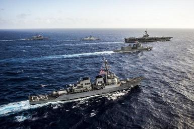 | Keywords: USS Stethem participates in a photo exercise with JS Ashigara, USS George Washington, an unidentified naval vessel, and USS Shiloh.JPG en 140730-N-IP531-529 WATERS EAST OF OKINAWA July 30 2014 The guided-missile destroyer USS Stethem DDG 63 foreground participates in a photo exercise with the Japan Maritime Self-Defense Force destroyer JS Ashigara DDG 178 the aircraft carrier USS George Washington CVN 73 an unidentified naval vessel and the guided-missile cruiser USS Shiloh CG 67 during Malabar 2014 Malabar is a U S Navy Indian navy and Japan Maritime Self-Defense Force naval exercise to improve collective maritime relationships and increase understanding in multinational operations U S Navy photo by Mass Communication Specialist 3rd Class Chris Cavagnaro/Released 2014-07-30 07 51 12 Ships underway in formation during Malabar 2014 U S Navy other versions Custom license marker 2015 11 02 PD-USGov-Military-Navy Malabar 2014 Uploaded with UploadWizard |