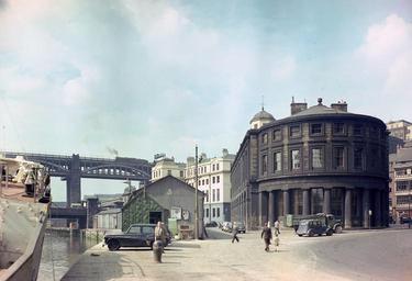 | Keywords: newcastle upon tyne newcastleupontyne 1950s colour photography colourphotography guildhall quayside high level bridge highlevelbridge river tyne rivertyne surrounding area surroundingarea april 1958 april1958 train crossing traincrossing train steam smoke bridge structure metal steel vessel bolt nut rope deck rail handle water river plate pole porthole pedestrian shadow light sky walking men boy cllothes shoes socks shorts jumper shirt trousers tie belt coat buildings vehicle wheel glass window street post streetpost lamp chimney wall roof sign number door pavement road truck car cloth board street tin stone timber debris pipe reflection abstract interesting social outdoor architecture View of the Guildhall, Newcastle upon Tyne and the surrounding area, April 1958 (TWAM ref. DT.TUR/4/976/6). It also shows a train crossing the High Level Bridge in the background. Tyne & Wear Archives presents a series of images taken by the Newcastle-based photographers Turners Ltd. The firm had an excellent reputation and was regularly commissioned by local businesses to take photographs of their products and their premises. Turners also sometimes took aerial and street views on their own account and many of those images have survived, giving us a fascinating glimpse of life in the North East of England in the second half of the Twentieth Century. (Copyright) We're happy for you to share these digital images within the spirit of The Commons. Please cite 'Tyne & Wear Archives & Museums' when reusing. Certain restrictions on high quality reproductions and commercial use of the original physical version apply though; if you're unsure please email archives@twmuseums.org.uk View of the Guildhall, Newcastle upon Tyne and the surrounding area, April 1958 (TWAM ref. DT.TUR/4/976/6). It also shows a train crossing the High Level Bridge in the background. Tyne & Wear Archives presents a series of images taken by the Newcastle-based photographers Turners Ltd. The firm had an excellent reputation and was regularly commissioned by local businesses to take photographs of their products and their premises. Turners also sometimes took aerial and street views on their own account and many of those images have survived, giving us a fascinating glimpse of life in the North East of England in the second half of the Twentieth Century. (Copyright) We're happy for you to share these digital images within the spirit of The Commons. Please cite 'Tyne & Wear Archives & Museums' when reusing. Certain restrictions on high quality reproductions and commercial use of the original physical version apply though; if you're unsure please email archives@twmuseums.org.uk |