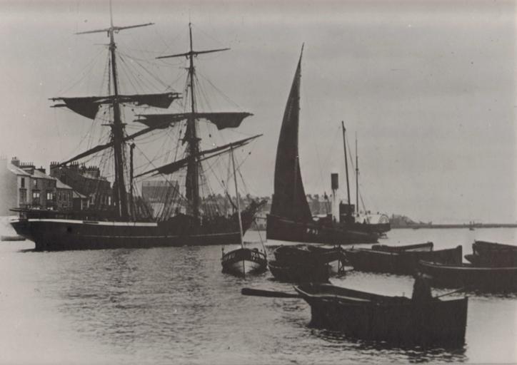| Keywords: reverend pattison hartlepool boats Photograph showing a twin-masted sailing ship being led out to sea by a paddle tug, as a herring boat arrives in the harbour. Several small rowing boats can be seen scattered across the foreground, with the town providing a backdrop. Photograph Collection Number 692 Photograph showing a twin-masted sailing ship being led out to sea by a paddle tug, as a herring boat arrives in the harbour. Several small rowing boats can be seen scattered across the foreground, with the town providing a backdrop. Photograph Collection Number 692 |