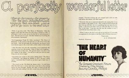 | Keywords: The Heart of Humanity (1918) - Ad.jpg The Heart of Humanity 1918 with Dorothy Phillips pages 726 and 727 of the July 19 1919 Motion Picture News 1919-07-19 https //archive org/details/motionpicturenew201unse Motion Picture News Jul-Aug 1919 at the Internet Archive Universal Film Manufacturing Company PD-USGov DEFAULTSORT Heart of Humanity The Uploaded with UploadWizard Dorothy Phillips The Heart of Humanity Motion Picture News | ||||