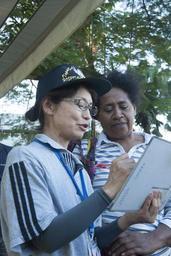| Keywords: The hospital ship USNS Mercy (T-AH 19) participates in Pacific Partnership 2015 in Suva, Fiji 150608-N-HE318-102.jpg en SUVA Fiji June 8 2015 Yoshiko Hanzawa a dental hygienist with the Japanese Maritime Self Defense Force educates a Fijian woman about dental hygiene at Ratu Sakuana Park during a community health engagement for Pacific Partnership 2015 The Military Sealift Command hospital ship USNS Mercy T-AH 19 is currently in Suva Fiji for its first mission port of PP15 Pacific Partnership is in its 10th iteration and is the largest annual multilateral humanitarian assistance and disaster relief preparedness mission conducted in the Indo-Asia-Pacific region While training for crisis conditions Pacific Partnership missions to date have provided real world medical care to approximately 270 000 patients and veterinary services to more than 38 000 animals Critical infrastructure development has been supported in host nations during more than 180 engineering projects U S Navy photo by Mass Communication Specialist 3rd Class William McCann/RELEASED 2015-06-07 Petty Officer 3rd Class William McCann https //www dvidshub net/image/1984597 150608-N-HE318-102 2015-06-09 02 25 SUVA FJ PD-USGov-Military-Navy USNS Mercy T-AH-19 Pacific Partnership 2015 Images from DoD uploaded by Fæ |