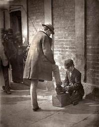 | Keywords: lse london school of economics londonschoolofeconomics street_life_in_london streetlifeinlondon shoe-black shoeblack shoe shine boy shoeshineboy boot-black bootblack child worker childworker shoe shine shoeshine london street photography streetphotography monochrome From 'Street Life in London', 1877, by John Thomson and Adolphe Smith: “The independent boot-black whose photograph is before the reader, found by experience that the system instituted was not altogether pleasant. He has served in two brigades, the "blues" and the "reds," and found them both equally objectionable; so, at last, he gave up the uniform and became an independent boot-black. In this capacity, though free, he experienced all the persecutions to which I have alluded, and as he grew older and more tired of this life, he finally resolved to leave the narrow streets for the broader thoroughfares of the ocean. As a sailor, he promises to become a useful help to his captain and ship. His mother has to nurse an invalid husband, and must also provide for a large family. Under these circumstances, it was not always easy for her to spare the services of her son. But when he became an independent boot-black, he could go out at his own hours, and thus was of greater use to his mother in her trouble; and it was a great help to the family to know that whenever the boy had a few moments to spare, he might run out and hope to gain some pence by cleaning gentlemen's boots.” For the full story, and other photographs and commentaries, follow this link and click through to the PDF file at the bottom of the description archives.lse.ac.uk/Record.aspx?src=CalmView.Catalog&i... From 'Street Life in London', 1877, by John Thomson and Adolphe Smith: “The independent boot-black whose photograph is before the reader, found by experience that the system instituted was not altogether pleasant. He has served in two brigades, the "blues" and the "reds," and found them both equally objectionable; so, at last, he gave up the uniform and became an independent boot-black. In this capacity, though free, he experienced all the persecutions to which I have alluded, and as he grew older and more tired of this life, he finally resolved to leave the narrow streets for the broader thoroughfares of the ocean. As a sailor, he promises to become a useful help to his captain and ship. His mother has to nurse an invalid husband, and must also provide for a large family. Under these circumstances, it was not always easy for her to spare the services of her son. But when he became an independent boot-black, he could go out at his own hours, and thus was of greater use to his mother in her trouble; and it was a great help to the family to know that whenever the boy had a few moments to spare, he might run out and hope to gain some pence by cleaning gentlemen's boots.” For the full story, and other photographs and commentaries, follow this link and click through to the PDF file at the bottom of the description archives.lse.ac.uk/Record.aspx?src=CalmView.Catalog&i... |