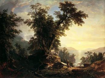 | Keywords: The Indian's Vespers by Asher Brown Durand, 1847.jpg Artwork Creator Asher Brown Durand The Indian's Vespers 1847 oil on canvas cm 117 2 158 1 White House Washington D C United States Notes from The White House Historical Association <br> Durand had been notified by a letter of February 26 1847 that the American Art-Union wished to commission him 'to paint for the institution a landscape The subject and size to be left to your own choice ' Durand seized the opportunity The Indian his arms raised to the sun in praise is bathed in a yellow- and pink-hued light He is further emphasized by the brilliant path of the sun's reflections on one of those 'lakes embosomed in ancient forests' that Durand praised as original features of the American landscape The central stand mediates between the fallen trees tangled growth and misty hills on the left and on the right the blossoming plants and the young trees on the shore of the unspoiled lake At its base like a cenotaph is a blasted tree trunk Durand has summoned virgin forests vast waters insubstantial mists man in his natural state and the sun's unifying eye to evoke the ancient roots and yearnings of mankind The White House Historical Association PD-art Other versions http //www whitehouseresearch org/assetbank-whha/action/viewAsset id 17; File Asher B Durand - The Indian's Vespers - Google Art Project jpg PD-old-100 Landscape paintings by Asher B Durand 1847 paintings Paintings in the White House Vespers 1840s landscape paintings American Art-Union |
