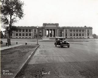 | Keywords: The Jefferson Memorial Building and the intersection of Lindell Boulevard and DeBaliviere Avenue after the completion of construction for the River des Peres Sewerage and Drainage Project in the area, 25 September 1930.jpg en Horizontal black and white photograph showing the Jefferson Memorial Building and the intersection of Lindell Boulevard and DeBaliviere Avenue on 25 September 1930 after the completion of construction for the River des Peres Sewerage and Drainage Project in the area A car is shown turning onto DeBaliviere from Lindell and a man carrying an umbrella can be seen walking on the sidewalk P0054-00005 is a duplicate of this image The directors of the 1904 World's Fair used some of the salvage materials after the fair to build a permanent memorial to Thomas Jefferson in commemoration of the 100th anniversary of the Louisiana Purchase The memorial building was intended to store the archives of the Louisiana Purchase Exposition Company the collection of the Missouri Historical Society and historical artifacts associated with the territory the U S acquired in the Louisiana Purchase The statue of Jefferson was created by Karl Bitter who was the chief sculptor for the World's Fair 1930 http //collections mohistory org/resourceMgr/145108 html author other versions Custom license marker 2016 02 02 http //collections mohistory org/resourceMgr/145108 html History of St Louis |