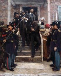 | Keywords: 'The Last Moments of John Brown', oil on canvas painting by Thomas Hovenden.jpg Artwork Creator Thomas Hovenden 1882 “84 oil canvas cm 196 5 168 3 institution Metropolitan Museum of Art Gallery 762 accession number 97 5 http //www metmuseum org/collection/the-collection-online/search/11160 The Metropolitan Museum of Art object history credit line Gift of Mr and Mrs Carl Stoeckel 1897 exhibition history Copyright / T Hovenden 1884 ~ lower left signature / date Metropolitan Museum of Art PD-old-100 DEFAULTSORT Hovenden Thomas; Last Moments of John Brown; Metropolitan Museum of Art Thomas Hovenden American paintings in the Metropolitan Museum of Art Paintings of John Brown abolitionist Paintings of the American Civil War |