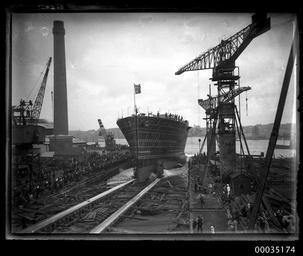 | Keywords: hood collection hoodcollection hmas albatross hmasalbatross dry dock drydock dock cockatoo island cockatooisland samuel j hood collection samueljhoodcollection sydney harbour sydneyharbour sydney naval vessel navalvessel ship warship royal australian navy royalaustraliannavy ran hmas albatross (1928) hmasalbatross1928 seaplane tender seaplanetender royal navy royalnavy hms albatross hmsalbatross seaplane carrier seaplanecarrier cockatoo docks and engineering company cockatoodocksandengineeringcompany cockatoo island dockyard cockatooislanddockyard ship launching shiplaunching slipway crane hood navy launch naval personnel navalpersonnel naval officers navalofficers officials navy event navyevent cockatoo island dockyards cockatooislanddockyards 1928 reverend a g rix reverendagrix lady ethel stonehaven ladyethelstonehaven lord john lawrence baird stonehaven lordjohnlawrencebairdstonehaven lord stonehaven lordstonehaven blackandwhite monochrome photo border outdoor black and white This photograph depicts the launch of the Royal Australian Navy's first seaplane carrier HMAS ALBATROSS I on 23 February 1928 at Cockatoo Island Dockyard in Sydney. This photo is part of the Australian National Maritime Museum’s Samuel J. Hood Studio collection. Sam Hood (1872-1953) was a Sydney photographer with a passion for ships. His 60-year career spanned the romantic age of sail and two world wars. The photos in the collection were taken mainly in Sydney and Newcastle during the first half of the 20th century. The ANMM undertakes research and accepts public comments that enhance the information we hold about images in our collection. This record has been updated accordingly. Photographer: Samuel J. Hood Studio Collection Object no. 00035174 This photograph depicts the launch of the Royal Australian Navy's first seaplane carrier HMAS ALBATROSS I on 23 February 1928 at Cockatoo Island Dockyard in Sydney. This photo is part of the Australian National Maritime Museum’s Samuel J. Hood Studio collection. Sam Hood (1872-1953) was a Sydney photographer with a passion for ships. His 60-year career spanned the romantic age of sail and two world wars. The photos in the collection were taken mainly in Sydney and Newcastle during the first half of the 20th century. The ANMM undertakes research and accepts public comments that enhance the information we hold about images in our collection. This record has been updated accordingly. Photographer: Samuel J. Hood Studio Collection Object no. 00035174 |