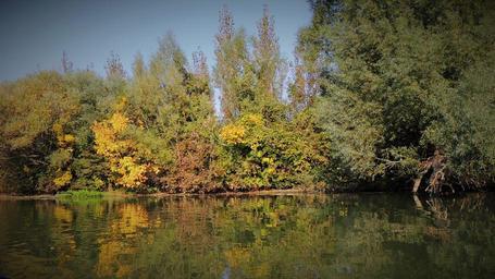 Keywords: the little danube river slovakia trees nature landscape water reflection autumn colors autumn leaves photo