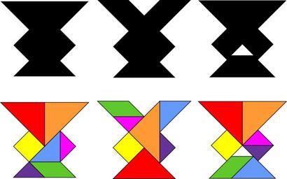 | Keywords: The Magic Dice Cup tangram paradox.svg en The Magic Dice Cup A tangram paradox from Sam Loyd ™s Eighth Book of Tan 1903 Each of these cups was composed using the same seven geometric shapes But the first cup is whole and the others contain vacancies of different sizes own AlphaZeta 2012-03-30 Tangrams Cc-zero |