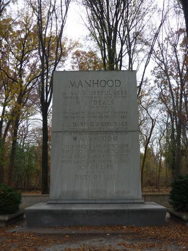 | Keywords: The Manhood stone tablet.JPG en One of four tablets which stand on both sides of the Theodore Roosevelt Sculpture on Theodore Roosevelt Island This tablet bears quotes on the subject of the Manhood A man's usefulness depends upon his living up to his ideals in so far as he can It is hard to fail but it is worse never to have tried to succeed All daring and courage all iron endurance of misfortune make for a finer and nobler type of manhood Only those are fit to live who do not fear to die and none are fit to die who have shrunk from the joy of life and the duty of life 2013-11-21 14 18 00 own Discol Uploaded with UploadWizard Theodore Roosevelt Island National Memorial |