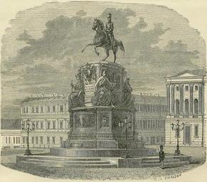 | Keywords: The Monument to Nicholas I.jpg uk Пам`ятник иколі І у Санкт-Пете бу зі s by the best authors Edited by Leo de Colange Boston E W Walkers Co 1887 The Monument to Nicholas I Russian Памятник иколаю I is a bronze equestrian monument of Nicholas I of Russia on St Isaac's Square in front of Saint Isaac's Cathedral in Saint Petersburg Russia Unveiled on July 7th O S June 25th 1859 the six-meter statue was a technical wonder of its time It was the first equestrian statue in Europe with only two support points the rear hooves of the horse the only precedent being the 1852 equestrian statue of U S President Andrew Jackson 1884 http //www upailive com/goods_1047380 html Artist unknown Engraved by H De La Charlerie PUBLISHER THOMAS DE LAMOTTE SAINTE-MARTIN PARIS 1884 other versions Custom license marker 2015 10 09 PD-old-100 PD-US 1884 in Russia Uploaded with UploadWizard Uploaded with UploadWizard |