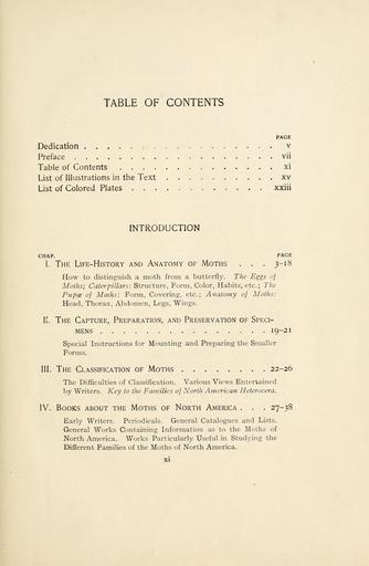 | Keywords: The moth book (Page 11) BHL17026227.jpg The moth book a popular guide to a knowledge of the moths of North America / by W J Holland 17026227 57105 17722 Page 11 Table of Contents http //www biodiversitylibrary org/page/17026227 10 5962/bhl title 17722 Holland W J NOT_IN_COPYRIGHT<br> Biodiversity Heritage Library Check categories 2015 October 30 PD-old-70-1923 The Moth Book - W J Holland Images uploaded by Fæ Files from the Biodiversity Heritage Library | ||||