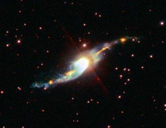 | Keywords: garden-sprinkler nebula gardensprinklernebula hen 3-1475 hen31475 outdoor black background There are many mysterious objects seen in the night sky which are not really well understood. For example, astronomers are puzzled by the 'jets' emerging from planetary nebulae. However, the S-shaped jet from Henize 3-1475 is the most perplexing of all. 'Jets' are long outflows of fast-moving gas found near many objects in the Universe, such as around young stars, or coming from black holes, neutron stars, and planetary nebulae, for example. The NASA/ESA Hubble Space Telescope has imaged the young planetary nebula Henize 3-1475 and its bizarre jet. Astronomers have nicknamed it the 'Garden-sprinkler' Nebula. There are many mysterious objects seen in the night sky which are not really well understood. For example, astronomers are puzzled by the 'jets' emerging from planetary nebulae. However, the S-shaped jet from Henize 3-1475 is the most perplexing of all. 'Jets' are long outflows of fast-moving gas found near many objects in the Universe, such as around young stars, or coming from black holes, neutron stars, and planetary nebulae, for example. The NASA/ESA Hubble Space Telescope has imaged the young planetary nebula Henize 3-1475 and its bizarre jet. Astronomers have nicknamed it the 'Garden-sprinkler' Nebula. |