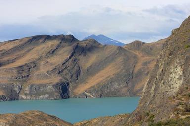 Keywords: chile patagonia water road south america destination trail america far park national green turn rocks travel view day mountains gravel road torres sign south sunny light trekking lake lake pehoe black serpentine road