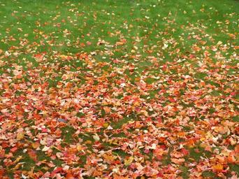 Keywords: the onset of autumn green grass yellow leaves lawn