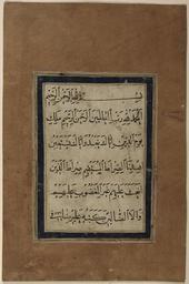 | Keywords: The Opening WDL6797.png Artwork ru Али иза fr 'Aliriza en 'Aliriza zh 'Aliriza pt 'Aliriza ar علي ريزا es 'Aliriza ru Отк ывающая книгу fr L'ouverture en The Opening zh 端 pt A Abertura ar الفاتحة ru В ве хней части этого каллиг афического панно соде жится <em>бисмиллах</em> Во имя Аллаха илостивого и илосе дного за кото ым следует пе вая <em>су а</em> глава ко ана <em> al-Fatihah </em> Отк ывающая книгу Су а п едва яет чтение ко ана и соде жит п ославление Аллаха и п осьбу о наставлении на п аведный путь а последней ст оке панно с су ой подписано неким Али изой и указана дата 1241 г хидж ы 1825 г н э Вся каллиг афия п едставленного об азца выполнена письмом насх укописным темно-ко ичневым цветом на бежевой бумаге текст об амлен несколькими че едующимися золотыми и темно-синими амками и наклеен на подложку из толстого ка тона Подпись возможно п инадлежит жившему в 19-ом веке и анскому каллиг афу Али изе б Хаджи ухаммаду Джафа у создавшему каллиг афическое п оизведение дати ованное 1258 г хидж ы 1842 г н э кото ое в настоящее в емя х анится в ациональной библиотеке И ана Работа Али изы свидетельствует о воз ождении инте еса к письму насх в новое в емя и является езультатом влияния абот п едшественника Али изы знаменитого и анского калиг афа 18-го века Ахмада аи изи аи изи был последним великим каллиг афом И ана кото ый в сове шенстве владел письмом насх в то в емя когда п едпочтение было отдано талику и насталику <br>А абская каллиг афия; Иллюмини ование укописей; Исламская каллиг афия; Исламские укописи; Ко ан fr Ce panneau calligraphique comporte le <em>basmala</em> Au nom de Dieu dans la partie supérieure suivi de la première <em>sourate</em> chapitre du coran <em>al-Fatihah</em> Liminaire La sourate introduit le coran en louant Dieu et en lui demandant de servir de guide pour indiquer le bon chemin la dernière ligne le panneau de la Fatihah est signé par un certain 'Aliriza et daté de 1241 A H 1825 apr J -C L'exemplaire est entièrement calligraphié en naskhi écriture cursive brun foncé sur un papier beige encadré d'une série de cadres alternativement dorés ou bleu foncé et collé sur un épais support de carton 'Aliriza pourrait être le calligraphe persan du XIX<sup>e</sup> siècle 'Aliriza b Hajji Muhammad Ja'far auteur d'un ouvrage calligraphique daté de 1258 1842 qui se trouve actuellement à la Bibliothèque nationale d'Iran L'œuvre de 'Aliriza montre un regain d'intérêt pour l'écriture naskhi au cours de la période moderne et semble devoir beaucoup à l'œuvre de son prédécesseur le célèbre calligraphe persan du XVIII<sup>e</sup> siècle Ahmad Nayrizi Nayrizi fut le dernier grand calligraphe d'Iran à maîtriser l'écriture naskhi à une époque où la préférence allait aux styles d'écriture nasta'liq et ta'liq <br>Calligraphie arabe; Enluminures; Calligraphie islamique; Manuscrits islamiques; Coran en This calligraphic panel includes the <em>bismillah</em> In the name of God at the top followed by the Qur'an's first <em>surah</em> chapter <em>al-Fatihah</em> The opening The surah introduces the Qur'an by praising God and asking for his guidance to the right path On the last line the Fatihah panel is signed by a certain 'Aliriza and dated A H 1241 A D 1825 The entire specimen is calligraphed in dark brown naskh cursive script on a beige paper which is framed by a series of alternating gold and dark blue frames and pasted on a thick cardboard backing 'Aliriza may be the 19th-century Persian calligrapher 'Aliriza b Hajji Muhammad Ja'far who executed a calligraphic work dated 1258 1842 that is now in the National Library of Iran 'Aliriza's work shows a revival of interest in the naskh script during the modern period and appears indebted to the work of his predecessor the famous 18th-century Persian calligrapher Ahmad Nayrizi Nayrizi was the last great calligrapher of Iran to master the naskh script at a time when preference was given to the ta'liq and nasta'liq scripts <br>Arabic calligraphy; Illuminations; Islamic calligraphy; Islamic manuscripts; Koran zh 这个书法 幅的顶部 <em>bismillah</em>(以 主之名),以下是古兰经的第 <em>surah</em>(章)<em>al-Fatihah</em>( 端) 该 surah 是对古兰经的介绍,提出了对 主的赞美,并祈求其指引正确的道路 后 行,Fatihah 幅 某位名为阿里利 'Aliriza 的人的签名,以及伊斯兰历 1241 年(公元 1825 年)的日 整个标 是 米色纸上用深褐色纳斯赫体(草书)书写的书法,带 交替的金色和深 色边框,并裱糊 厚厚的硬纸 底 上 阿里利 可能是 19 世纪的波斯书法家阿里利 · b ·哈吉·穆罕默德·加法尔 'Aliriza b Hajji Muhammad Ja'far ,他的 幅日 为 1258 年(1842 年)的书法 品现藏于伊 国家图书馆 阿里利 的 品体现了现代时 再次对纳斯赫体感兴趣,且似乎受益于他的前辈,即 18 世纪的著名波斯书法家艾哈迈德· 纳里兹 Ahmad N