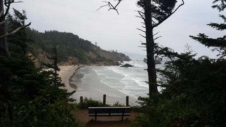 Keywords: oregon coast sea outdoor breathtaking clear park green seaside rocks travel colourful amazing view pacific ocean stacks trees sand horizon summer waves clouds oregon coast recreation wood forest beach colorful mountai