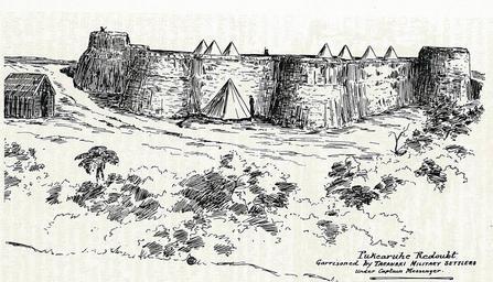 | Keywords: The original redoubt at pukearuhe.jpg en The original redoubt at Pukearuhe A blockhouse was afterwards built in the redoubt and the work was enlarged Pukearuhe was occupied as a frontier Armed Constabulary post until the year 1885 The New Zealand Wars James Cowan 1922 History of New Zealand James Cowan New Zealand writer PD-old |