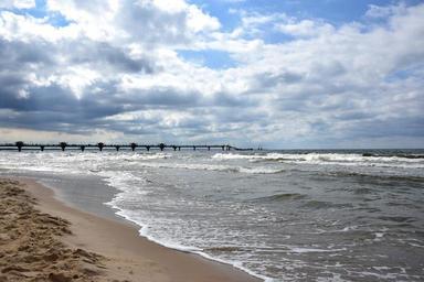 Keywords: the pier międzyzdroje the waves sea clouds spitting water the baltic sea waves the coast sea foam beach holidays summer landscape ocean water