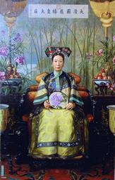 | Keywords: The Portrait of the Qing Dynasty Cixi Imperial Dowager Empress of China.PNG Artwork Creator Hubert Vos Hubert Vos of the dowager Empress Cixi of Qing Dynasty siting on an armchair On the bamboo forest painted background there is written from right to left in traditionnal chinese 大清 慈禧皇太后 simplified 大清国慈禧皇太后 meaning Great Qing Empire Cixi Empress Cups of fruits surrounding the character as for any highest rank personality in Imperial China Hubert Vos de l'impératrice douairière Cixi de la Dynastie Qing assise sur un fauteuil Sur le fond décoré d'une peinture de forêt de bambou il y a une inscription en chinois traditionnel 大清 慈禧皇太后 en version simplifiée 大清国慈禧皇太后 signifiant « Impératrice Cixi du Grand Empire Qing » Des coupes de fruits entourent le personnage comme pour toutes les personnalités de plus haut rang de la Chine impériale 胡博·华士 Hubert Vos 荷兰画家的油画 慈禧皇太后 扶手椅上 后 竹林画的背景上边 写 大清 慈禧皇太后 ( 体 大清国慈禧皇太后 ) 慈禧旁边 水 盘 1906 Oil Canvas cm 223 142 <ref name Artxun >http //news artxun com/youhua-1328-6639360 shtml</ref> Summer Palace Beijing accession number object history Museum Summer palace <ref name Artxun /> credit line https //repository si edu/bitstream/handle/10088/17970/096-109_Anderson EastWest Web Final pdf sequence 1 isAllowed y Anderson Virginia A Semi-Chinese Picture Hubert Vos and the Empress Dowager of China PD-old-auto 1935 PD-China 150px Réferences <references /> DEFAULTSORT Vos Hubert Portrait paintings by Hubert Vos Dowager Empress Cixi Portrait paintings of Empress Dowager Cixi |