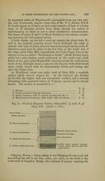 | Keywords: The Quarterly journal of the Geological Society of London (13204980744).jpg OF NOKTH OXFORDSHIRE AND THE CLTPEUS-GRIT <br> 233 <br> by separated valves of Rhynclionella cynocephala from my own cabi- <br> net and Terebratula simplex from that of Mr T J Slatter F G S <br> It would appear as if there are here some remains of beds of a lower <br> zone or of material derived from them though the section is <br> unfortunately so small as not to allow satisfactory determination <br> The fauna of series B and C of Hook Norton is very similar except- <br> ing however the last-named species <br> A little higher up the hill a sand-pit exposes the plant-beds D ; <br> and in the roadside quarries nearer Great Rollright the ridge is <br> crested with beds of sandy siliceous limestones representing series E <br> Attention must here be called to the fact that at the north end of <br> the ridge called Otley Hill immediately above the Upper Lias is the <br> outcrop of the so-called Northampton Sands Hook-Norton type <br> whilst two miles further south-westward on the north and south <br> flanks of the part called Bright Hill whereon stands the well-known <br> circle of the Rollright stones crops out the Clypeus-Grit Cotteswold <br> type richly stored with its characteristic fossils and resting also <br> upon the Upper Lias <br> At Whichford about two miles west of Otley Hill a roadside <br> quarry yields Astarte elegans c At the Grayton pit further <br> up the hill the higher beds are extensively worked and a stratum <br> abounding with separated valves of Trigonia signata can be clearly <br> traced The section as measured is ” <br> ft in <br> 1 Humus 1 <br> 2 Cream-coloured siliceous limestone 6 6 <br> 3 Sanely limestone with T signata passing into No 4 10 <br> 4 Blue-hearted limestones with wood ; base not shown 3 <br> Fig 2 ” Vertical Diagram Section Sharpshill <br> Otley Hill Scale 1 144 <br> 1 mile JV~ of <br> Great Oolite <br> Marls and clays <br> E Siliceous Limestone <br> E Siliceous Limestone <br> D Sands and Limeston <br> C Oolitic earthy Limestone <br> Trigonia signata and sp <br> Monodonta Labadyei <br> Amm Parkinsoni <br> Gervillia Icevis Avicula braambu- <br> riensis Ostrea Knorrii and Tri- <br> gonia costata <br> Chipping Norton ” Upon taking to the Chipping-Norton road and <br> descending the hill to the Dip valley one notes in the fields to the <br> Bridge the outburst of springs marking the <br> north-west of Langdon 36928830 113681 51125 Page 233 Text 39 http //www biodiversitylibrary org/page/36928830 1883 Geological Society of London NameFound Astarte elegans NameFound Avicula NameConfirmed Avicula EOLID 10721231 NameBankID 4633901 NameFound Gervillia NameConfirmed Gervillia NameBankID 4176998 NameFound Monodonta NameConfirmed Monodonta EOLID 58116 NameBankID 4934925 NameFound Ostrea NameConfirmed Ostrea EOLID 10719983 NameBankID 2692450 NameFound Rhynclionella cynocephala NameConfirmed Rhynchonella cynocephala NameFound Terebratula simplex NameConfirmed Terebratula simplex NameBankID 6808509 NameFound Trigonia signata Biodiversity Heritage Library The Quarterly journal of the Geological Society of London v 39 1883 Geology Periodicals Smithsonian Libraries bhl page 36928830 dc identifier http //biodiversitylibrary org/page/36928830 smithsonian libraries Information field Flickr posted date ISOdate 2014-03-16 Check categories 2015 August 26 CC-BY-2 0 BioDivLibrary https //flickr com/photos/61021753 N02/13204980744 2015-08-26 13 54 27 cc-by-2 0 PD-old-70-1923 The Quarterly journal of the Geological Society of London 1883 Photos uploaded from Flickr by Fæ using a script |