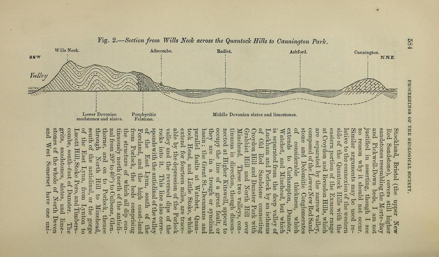 | Keywords: The Quarterly journal of the Geological Society of London (13071116235).jpg 584 <br> PEOCEEDINGS OF THE GEOLOGICAL SOCIETY <br> 1 <br> C <br> <br> CM <br> h <br> Stockland Bristol the upper New <br> Eed Sandstone covers still higher <br> sandstones resembling the Morte-Bay <br> and Pickwell-Down beds I am not <br> justified in asserting though I see <br> no reason why it should not occur <br> Similar arguments may be used re- <br> lative to the connexion of the western <br> side of the Quantock Hills with the <br> eastern portion of the Exmoor range <br> at Croydon and Brendon Hills which <br> are separated by the narrow valley <br> composed of the Lower New Red Sand- <br> stone and Dolomitic Conglomerates <br> of considerable thickness which <br> extends to Carhampton Dunster <br> Watchet and Minehead but which <br> is separated from the deep valley of <br> Luckham and Porlock by an isthmus <br> of Old Sed Sandstone connecting <br> Croydon Hill and Dunster Park with <br> Grabbist Hill and North Hill over <br> Minehead These two valleys con- <br> tinuous in direction though discon- <br> nected at Higher Kitswell appear to <br> occupy the line of a great fault or <br> they are in a trough or synclinal <br> basin ; the Great St -Decumans and <br> parallel faults at Watchet Quan- <br> tock Head and Little Stoke which <br> extend for fourteen miles are trace- <br> able by the depression of the Porlock <br> valley and the reversed dips of the <br> rocks into it This line also corre- <br> sponds with the anticlinal of the valley <br> of the East Lynn south of the <br> Foreland and the high coast-land <br> from Porlock the beds comprising <br> the structure of which all dip con- <br> tinuously north north of the anticli- <br> nal from 20° to 40° to Culbone Glen- <br> thorne and on to Porlock thence <br> through North Hill to Minehead <br> south of the anticlinal or the gorge <br> of the East Lynn from Lynton to <br> Lucott Hill Stoke Pero and Timbers- <br> combe south-feast of Dunster The <br> grits sandstones slates and lime- <br> stones of the whole of North Devon <br> and West Somerset have one uni- 36345347 112028 51125 Page 584 Text v 23 http //www biodiversitylibrary org/page/36345347 1867 Geological Society of London Biodiversity Heritage Library The Quarterly journal of the Geological Society of London v 23 1867 Geology Periodicals Smithsonian Libraries bhl page 36345347 dc identifier http //biodiversitylibrary org/page/36345347 smithsonian libraries Information field Flickr posted date ISOdate 2014-03-10 Check categories 2015 August 26 CC-BY-2 0 BioDivLibrary https //flickr com/photos/61021753 N02/13071116235 2015-08-26 13 52 19 cc-by-2 0 PD-old-70-1923 The Quarterly journal of the Geological Society of London 1867 Photos uploaded from Flickr by Fæ using a script |