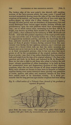| Keywords: The Quarterly journal of the Geological Society of London (12981206593).jpg  524 <br> PROCEEDINGS OP THE GEOLOGICAL SOCIETY Feb 2 <br> The broken edge of the new crater's rim showed still smoking <br> sections of the lava- currents which for some years I myself had <br> watched successively flowing down the sides of the cone from minor <br> eruptions at its summit and leaving soHd ribs of lava- rock upon its <br> surface-slopes up which ribs I often cHmbed the cone I had <br> through the same period seen an abundance of fragmentary lava and <br> scoriae discharged from various upper mouths forming hillocks and <br> protuberances upon the rude platform which then surmounted the <br> cone ; one of which minor cones measuring no less than 450 ft in <br> height was thrown up within three months in the early part of that <br> year 1822 a fact confirmed by the testimony of MM Monticelli and <br> Covelli And with this positive experience of the rapid growth under <br> my own eyes of the cone of Vesuvius within two or three years only <br> of comparatively moderate activity and with the knowledge derived <br> from authentic records of some fifty or more paroxysmal eruptions <br> many of them of greater violence having occurred from this same <br> volcanic vent during the last eighteen centuries can I entertain any <br> respect for a theory which tells me that the entire mountain was <br> formed just as we now see it in the year 79 by some unintelligible <br> or at least unexampled process ” that it has not since that epoch <br> grown at all by the accumulation of the erupted matters whether <br> lavas or scoriae ” nay that it has rather diminished than increased in <br> bulk and height from the time of its original inflation Eor that is the <br> assertion put forth by de Buch and endorsed by M de Humboldt <br> Have we not also a right to ask those who refuse to believe the still <br> larger volcanic mountains of either hemisphere to be built up from <br> the accumulated lavas and fragmentary ejections of their repeated <br> eruptions what else can have become of all these erupted matters <br> Many such volcanos are known to have been in frequent or habitual <br> eruption during even recent historical times ejecting vast quantities <br> of scoriae pumice and ashes and enormous streams of lava from <br> their central crater or its immediate vicinity It is fairly pre- <br> sumable that for long previous ages similar eruptions had been taking <br> Eig 9 ” Ideal section of a Volcanic Cone formed of the products of <br> repeated Eruptions <br> place from the same vents The eruptionists admit that a single <br> eruption will give birth by accumulation not upheaval to a hill of 36162091 111474 51125 Page 524 Text v 15 http //www biodiversitylibrary org/page/36162091 1859 Geological Society of London NameFound Vesuvius Biodiversity Heritage Library The Quarterly journal of the Geological Society of London v 15 1859 Geology Periodicals Smithsonian Libraries bhl page 36162091 dc identifier http //biodiversitylibrary org/page/36162091 smithsonian libraries Information field Flickr posted date ISOdate 2014-03-07 Check categories 2015 August 26 CC-BY-2 0 BioDivLibrary https //flickr com/photos/61021753 N02/12981206593 2015-08-26 14 56 52 cc-by-2 0 PD-old-70-1923 The Quarterly journal of the Geological Society of London 1859 Photos uploaded from Flickr by Fæ using a script |