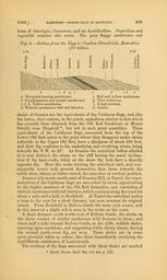 | Keywords: The Quarterly journal of the Geological Society of London (12895041495).jpg 1864 <br> BARENESS NORTU-EAST OF SCOTLAND <br> 439 <br> form of Osteolepis Coccosteus and an Acanthodian Coprolites and <br> vegetable remains also occur The grey flaggy sandstones and <br> Fig 4 ” Section from the Nigg to Cambus-Shandivick Ross-shire <br> 10 miles <br> s w n e <br> g f <br> a Footprint-bearing sandstones e <br> b Conglomerates and purple sandstones g <br> c f h Yellow sandstones i <br> d Whitish sandstones with red blotches k <br> d c b a <br> Eed and yellow sandstones <br> Thin corn stone <br> Conglomerates <br> Gneiss <br> shales of Geanies are the equivalents of the Caithness flags and like <br> the latter they contain in the joints asphaltum similar to that which <br> has recently been obtained from the Old Red Sandstone at Mount <br> Gerald near Dingwall but not in such great quantities These <br> equivalents of the Caithness flags measured from the top of the <br> Lower Old Red series to the point where they disappear under strata <br> referable to the Upper Old Red have a thickness of about 350 feet <br> and their dip conforms to the underlying and overlying strata being <br> towards the N W at 25° At Geanies the anticlinal before alluded <br> to is very distinct the strata on the cliff having the usual inclina- <br> tion of the land-rocks while on the shore the beds have a directly <br> opposite dip Here the rocks forming the anticlinal sink and con- <br> sequently newer beds present themselves than those towards the <br> south-west where as before stated the axis rises in vertical position <br> About a mile north-north-east of Geanies Hill at Tarrol the repre- <br> sentatives of the Caithness flags are succeeded by strata appertaining <br> to the higher members of the Old Red formation and consisting of <br> whitish sandstones with red blotches which continue along the coast for <br> about a mile and a half to Rockfield At Tarrol the anticlinal makes <br> a turn to the east for a short distance but soon assumes its original <br> course From Rockfield to Ballone Castle the same rock occurs and <br> in this interval a slight roll is seen in the rocks on the coast <br> A short distance north-north-east of Ballone Castle the strata on <br> the shore consist of similar sandstones with flexures in them ; and <br> about half a mile beyond Ballone Castle in the cliffs reddish shales <br> reposing upon sandstone and supporting white cherty strata having <br> the normal north-west dip are seen These shales are in some <br> spots greenish white in colour like those immediately overlying the <br> reptiliferous sandstones of Lossiemouth <br> The surfaces of the flags associated with these shales are marked <br> Quart Journ Geol Soc vol xix p 522 36089708 111261 51125 Page 439 Text v 20 http //www biodiversitylibrary org/page/36089708 1864 Geological Society of London NameFound Coccosteus NameConfirmed Coccosteus EOLID 4655829 NameBankID 4120354 NameFound Osteolepis NameConfirmed Osteolepis EOLID 13230688 NameBankID 4271975 Biodiversity Heritage Library The Quarterly journal of the Geological Society of London v 20 1864 Geology Periodicals Smithsonian Libraries bhl page 36089708 dc identifier http //biodiversitylibrary org/page/36089708 smithsonian libraries Information field Flickr posted date ISOdate 2014-03-03 Check categories 2015 August 26 CC-BY-2 0 BioDivLibrary https //flickr com/photos/61021753 N02/12895041495 2015-08-26 16 51 13 cc-by-2 0 PD-old-70-1923 The Quarterly journal of the Geological Society of London 1864 Photos uploaded from Flickr by Fæ using a script |