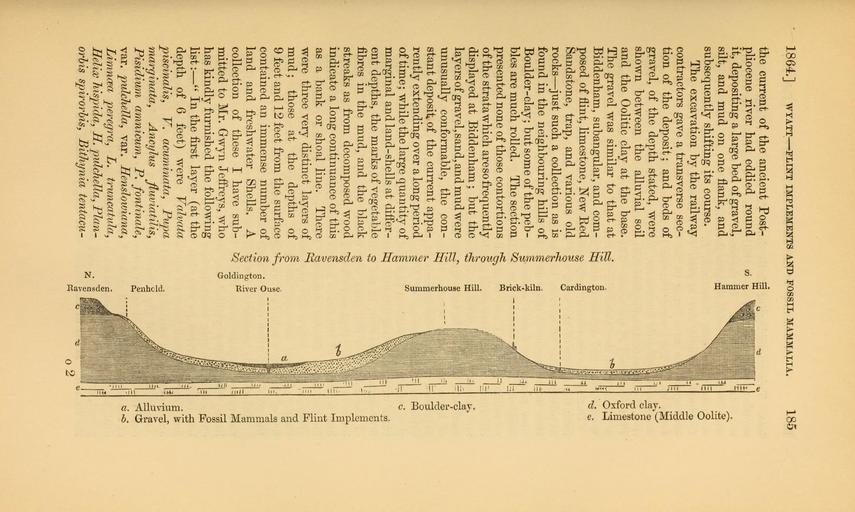 | Keywords: The Quarterly journal of the Geological Society of London (12894882215).jpg 1864 <br> WYATT FLINT IMPLEMENTS AND FOSSIL MAMMALIA <br> 185 <br> the current of the ancient Post- <br> pliocene river had eddied round <br> it depositing a large bed of gravel <br> silt and mud on one flank and <br> subsequently shifting its course <br> The excavation by the railway <br> contractors gave a transverse sec- <br> tion of the deposit; and beds of <br> gravel of the depth stated were <br> shown between the alluvial soil <br> and the Oolitic clay at the base <br> The gravel was similar to that at p§ <br> Biddenham stibangular and com- jjs <br> posed of flint limestone New Red » <br> Sandstone trap and various old g <br> rocks ” just such a collection as is f; <br> found in the neighbouring hills of g <br> Boulder-clay; but some of the peb- 1 <br> bles are much rolled The section Q <br> presented none of those contortions <br> of the strata which are so frequently § <br> displayed at Biddenham ; but the hg <br> layers of gravel sand and mud were <br> unusually conformable the con- S <br> stant deposit of the current appa- <br> rently extending over a long period g <br> of time ; while the large quantity of i <br> marginal and land- shells at differ- fc <br> ent depths the marks of vegetable © <br> fibres in the mud and the black g <br> streaks as from decomposed wood – § <br> indicate a long continuance of this § <br> as a bank or shoal line There § <br> were three very distinct layers of <br> mud; those at the depths of <br> 9 feet and 12 feet from the surface <br> contained an immense number of § <br> land and freshwater Shells A '-§ <br> collection of these I have sub- § <br> mitted to Mr Gwyn Jeffreys who <br> has kindly furnished the following <br> list ” In the first layer at the <br> depth of 6 feet were Vdlvata <br> piscinalis V acuminata Pupa <br> marginata Ancylus Jluviatilis <br> Pisidiwn amnicum P fontinale <br> var pulchella var Henslovnana <br> Limncea peregra L truncatula <br> Helix hispida H pulchella Plan- <br> orbis spirorbis Bithynia tentacu- <br> pq <br> xafc--'- <br> S <br> fc s <br> 3 <br> ft <br> Br- <br> « 36089426 111261 51125 Page 185 Text v 20 http //www biodiversitylibrary org/page/36089426 1864 Geological Society of London NameFound Ancylus NameConfirmed Ancylus EOLID 10711852 NameBankID 2687651 NameFound Bithynia NameConfirmed Bithynia EOLID 62757 NameBankID 2683521 NameFound Mammalia NameConfirmed Mammalia EOLID 15503955 NameBankID 2478620 NameFound Pupa fontinale NameConfirmed Piper fontinale NameBankID 10744412 NameFound Pupa marginata NameConfirmed Pupa marginata Draparnaud 1801 Biodiversity Heritage Library The Quarterly journal of the Geological Society of London v 20 1864 Geology Periodicals Smithsonian Libraries bhl page 36089426 dc identifier http //biodiversitylibrary org/page/36089426 smithsonian libraries Information field Flickr posted date ISOdate 2014-03-03 Check categories 2015 August 26 CC-BY-2 0 BioDivLibrary https //flickr com/photos/61021753 N02/12894882215 2015-08-26 16 54 26 cc-by-2 0 PD-old-70-1923 The Quarterly journal of the Geological Society of London 1864 Photos uploaded from Flickr by Fæ using a script |