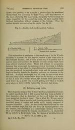 | Keywords: The Quarterly journal of the Geological Society of London (12893575733).jpg Vol 53 SUPERFICIAL DEPOSITS IX CUTCH 233 <br> blown sand present so as to make a greater slope the weathered <br> blocks which fell on it from the hills would under the influence of <br> the rains saturating the sand below slip gently forward along the <br> slope supported by the underlying sand till they reached their <br> farthest destination without sinking to the bottom Thus the <br> aeolian deposits have served as the carrier see fig 2 <br> Fig 2 Boulder-beds in the north of Patcham <br> A Boulder-beds <br> B Subrecent concrete <br> C Jurassic rocks <br> D Hypothetical former extension of <br> concrete with boulders <br> This explanation is analogous to that made use of by Sir Wyville <br> Thomson to account for the forward motion of the stone-river in <br> the Falkland Islands 1 and if it be a true one it is possible that it <br> may in some cases account for deposits of loose blocks which have <br> been referred to glacial action There will always be antagonism <br> between this process and the running away of the water in definite <br> channels and at last when the slope of the aeolian deposits became too <br> low the growth of the mounds would cease and the streams would <br> begin to sensibly denude the deposits and even cut channels in the <br> bed-rock It might be thought that all along the rain would wash <br> the sand away and let the boulders drop but we see that as a matter <br> of fact it does not ; besides which the boulder itself protects the <br> sand below it as in the case of earth- pillars and what is washed <br> away above or below will be replaced by the next dust-storm <br> 3 Infratrappean Grits <br> These deposits lying as they do below the traps cannot in strictness <br> be called superficial but it will be seen that they were probably of <br> that character that is deposited on the land before the traps <br> were poured on the top of them This is what Mr Wynne says of <br> them 'These form a peculiar soft loosely granular and obscurely <br> stratified group of earthy and sandy rocks largely composed of <br> trappean materials they are frequently associated with the base <br> of the stratified traps but they also occur in separate patches over <br> the country and sometimes at a considerable distance from them <br> They are clearly beneath the trap in some localities ; in others they <br> fill up hollows in the Jurassic beds the planes of stratification not <br> i ' Nature ' vol xr 1876 p 359 <br> Q J G S No 210 r 36029012 111130 51125 Page 233 Text 53 http //www biodiversitylibrary org/page/36029012 1897 Geological Society of London Biodiversity Heritage Library The Quarterly journal of the Geological Society of London v 53 1897 Geology Periodicals Smithsonian Libraries bhl page 36029012 dc identifier http //biodiversitylibrary org/page/36029012 smithsonian libraries Information field Flickr posted date ISOdate 2014-03-03 Check categories 2015 August 26 CC-BY-2 0 BioDivLibrary https //flickr com/photos/61021753 N02/12893575733 2015-08-26 17 58 08 cc-by-2 0 PD-old-70-1923 The Quarterly journal of the Geological Society of London 1897 Photos uploaded from Flickr by FĂŚ using a script |