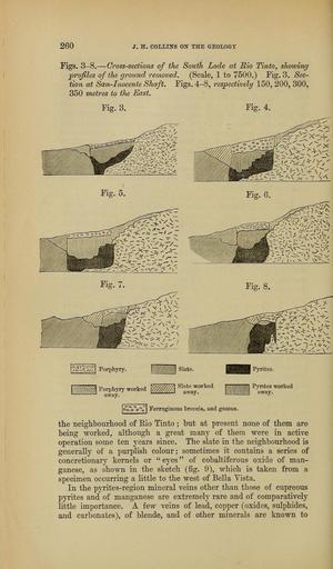 Keywords: The Quarterly journal of the Geological Society of London (13889827040).jpg 260 <br> J H COLLIN'S OZI THE GEOLOGY <br> Figs 3-8 Cross-sections of the South Lode at Bio Tinto showing <br> profiles of the ground removed Scale 1 to 7500 Pig 3 Sec- <br> tion at San-Inocente Shaft Figs 4-8 respectively 150 200 300 <br> 350 metres to the East <br> Fig 3 <br> Fi- 4 <br> FiR 5 <br> Fi2 6 <br> Porphyry <br> Slate <br> Pyrites <br> p p Porphyry worked <br> - ˘--- ' away <br> Slate worted <br> away <br> Permginoxis breccia and gozzan <br> Pyntes worked <br> a way <br> the neiglibonrliood of Eio Tinto ; but at present none of them are <br> being worked although a great many of them were in active <br> operation some ten j ears since The slate in the neighbourhood is <br> generally of a purplish colour; sometimes it contains a series of <br> concretionary kernels or eyes of cobaltiferous oxide of man- <br> ganese as shown in the sketch fig 9 which is taken from a <br> specimen occurring a little to the west of Bella Yista <br> In the pyrites-region mineral veins other than those of cupreous <br> pyrites and of manganese are extremely rare and of comparatively <br> little importance A few veins of lead copper oxides sulphides <br> and carbonates of blende and of other minerals are known to 37047116 114009 51125 Page 260 Text 41 http //www biodiversitylibrary org/page/37047116 1885 Geological Society of London NameFound Permginoxis breccia Biodiversity Heritage Library The Quarterly journal of the Geological Society of London v 41 1885 Geology Periodicals Smithsonian Libraries bhl page 37047116 dc identifier http //biodiversitylibrary org/page/37047116 smithsonian libraries Information field Flickr posted date ISOdate 2014-04-30 Check categories 2015 August 26 CC-BY-2 0 BioDivLibrary https //flickr com/photos/61021753 N02/13889827040 2015-08-26 04 56 08 cc-by-2 0 PD-old-70-1923 The Quarterly journal of the Geological Society of London 1885 Photos uploaded from Flickr by FĂŚ using a script |