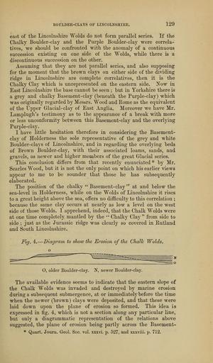 | Keywords: The Quarterly journal of the Geological Society of London (14076394705).jpg BOULDEE-CLATS OF LINCOLNSHIRE 129 <br> east of the Lincolnshire Wolds do not form parallel series If the <br> Chalky Boulder-clay and the Purple Boulder- clay were correla- <br> tives we should be confronted with the anomaly of a continuous <br> succession existing on one side of the Wolds while there is a <br> discontinuous succession on the other <br> Assuming that they are not parallel series and also supposing <br> for the moment that the brown clays on either side of the dividing <br> ridge in Lincolnshire are complete correlatives then it is the <br> Chalky Clay which is unrepresented on the eastern side Now in <br> East Lincolnshire the base cannot be seen ; but in Yorkshire there is <br> a grey and chalky Basement-clay beneath the Purple-clay which <br> was originally regarded by Messrs Wood and Rome as the equivalent <br> of the Upper Glacial-clay of East Anglia Moreover we have Mr <br> Lamplugh's testimony as to the appearance of a break with more <br> or less unconformity between this Basement-clay and the overlying <br> Purple-clay <br> I have little hesitation therefore in considering the Basement- <br> clay of Holderness the sole representative of the grey and white <br> Boulder-clays of Lincolnshire and in regarding the overlying beds <br> of Brown Boulder-clay with their associated loams sands and <br> gravels as newer and higher members of the great Glacial series <br> This conclusion differs from that recently enunciated by Mr <br> Searles Wood but it is not the only point on which his earlier views <br> appear to me to be sounder that those he has subsequently <br> elaborated <br> The position of the chalky Basement-clay at and below the <br> sea-level in Holderness while on the Wolds of Lincolnshire it rises <br> to a great height above the sea offers no difficulty to this correlation ; <br> because the same clay occurs at nearly as low a level on the west <br> side of those Wolds I apprehend indeed that the Chalk Wolds were <br> at one time completely mantled by the Chalky Clay from side to <br> side ; just as the Jurassic ridge was clearly so covered in Rutland <br> and South Lincolnshire <br> Fig 4 ” Diagram to shoiu the Erosion of the Chalk Wolds <br> o <br> O older Boulder-clay N newer Boulder-clay <br> The available evidence seems to indicate that the eastern slope of <br> the Chalk W olds was invaded and destroyed by marine erosion <br> during a subsequent submergence at or immediately before the time <br> when the newer brown clays were deposited and that these were <br> laid down upon the plane of erosion so formed This idea is <br> expressed in fig 4 which is not a section along any particular line <br> but only a diagrammatic representation of the relations above <br> suggested the plane of erosion being partly across the Basemen t- <br> Quart Journ Geol Soc vol xxxvi p 527 and xxxviii p 712 37046971 114009 51125 Page 129 Text 41 http //www biodiversitylibrary org/page/37046971 1885 Geological Society of London Biodiversity Heritage Library The Quarterly journal of the Geological Society of London v 41 1885 Geology Periodicals Smithsonian Libraries bhl page 37046971 dc identifier http //biodiversitylibrary org/page/37046971 smithsonian libraries Information field Flickr posted date ISOdate 2014-04-30 Check categories 2015 August 26 CC-BY-2 0 BioDivLibrary https //flickr com/photos/61021753 N02/14076394705 2015-08-26 04 59 38 cc-by-2 0 PD-old-70-1923 The Quarterly journal of the Geological Society of London 1885 Photos uploaded from Flickr by Fæ using a script |