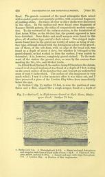 | Keywords: The Quarterly journal of the Geological Society of London (12513123963).jpg 454 <br> PROCEEDINGS OF THE GEOLOGICAL SOCIETY June 19 <br> Road The gravels consisted of the usual subangular flints mixed <br> with rounded quartz and quartzite pebbles with occasional fragments <br> of pudding-stone No traces of river or other shells were discovered <br> in this place In the surface-soil were found some fragments of <br> Romano-British pottery the relics of comparatively modern occupa- <br> tion To the eastward of the railway-station in the foundations of <br> East Acton ViUas on the 60-feet line the ground appeared to have <br> been disturbed Some flakes and small scrapers were found in this <br> place all of surface type and of a dark colour Two chipped imple- <br> ments found here in the gravel are worthy of notice as being of sur- <br> face type although stained with the ferruginous colour of the gravel ; <br> one of these of the celt-form with an edge at the broad end was <br> found at a depth of about 4 feet ; but whether it belonged to the <br> gravel-deposit or had worked in from the surface I was unable to <br> determine ; it is however completely gravel -stained To the west- <br> ward of the station the ground rises as seen by the contour-lines <br> marking the 70- 80- and 90-feet levels <br> In Alfred Road Section B the surface being 63 feetabove the datum <br> a small oval-shaped implement was found at a depth of 7 feet resting <br> on the actual surface of the London Clay and beneath an undisturbed <br> seam of sand 6 inches thick The surface of this implement is very <br> much rolled ; T saw it a few moments after it was taken out and I <br> have preserved a piece of the London Clay taken from immediately <br> below the spot <br> In Section C fig 2 surface 75 feet is seen the position of some <br> flakes and a flint shaped like a rough scraper found at a depth of <br> Fig 2 ” Section C in High-terrace Gravel at Hyde House Shalce- <br> sjjear I oad Surface 75 feet <br> 10 ft <br> a Surface soil 6 in b Disturbed soil 2-3 ft c Gravel and sand ferruginous <br> and irregular with lines of black oxide of iron 1-2 ft d Clay-sand blue <br> grey yellow and red 0-18 in e Gravel and sand with chips' throughout <br> 4 ft / London Clay - - Position of flint implements 34985505 108770 51125 Page 454 Text v 28 http //www biodiversitylibrary org/page/34985505 1872 Geological Society of London Biodiversity Heritage Library The Quarterly journal of the Geological Society of London v 28 1872 Geology Periodicals Smithsonian Libraries bhl page 34985505 dc identifier http //biodiversitylibrary org/page/34985505 smithsonian libraries Information field Flickr posted date ISOdate 2014-02-14 Check categories 2015 August 26 CC-BY-2 0 BioDivLibrary https //flickr com/photos/61021753 N02/12513123963 2015-08-27 10 00 11 cc-by-2 0 PD-old-70-1923 The Quarterly journal of the Geological Society of London 1872 Photos uploaded from Flickr by Fæ using a script |