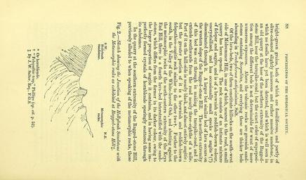 | Keywords: The Quarterly journal of the Geological Society of London (12471187273).jpg 8b PROCEEMJS GS OP THE GEOLOGICAL SOCIETY <br> bright-green grains both of which are fossiliferous and partly of <br> olive-colonred sHghtly micaceous and rather massive sandstone in <br> which no fossils have yet been detected and which is well seen in <br> an old qnarry at the base of the northern extremity of the Eagged- <br> stone Hill near the turnpike-road ; but the exact order of superposi- <br> tion among the different beds is not determinable for want of more <br> numerous exposures Above the volcanic rocks are greenish sand- <br> stones containing SerpuJites and overlying these are thicker beds <br> abounding in Trachyderma antiquissima Salt <br> Of the lava-beds two of them constitute hillocks on the south-west <br> side of Midsummer Hill in one of which nearest to the road a small <br> quarry has been opened The rock consists of an intimate mixture <br> of felspar and augite and is of a brownish or reddish-brown colour <br> uncrystallized and has occasionally small specks of augite <br> disseminated through it A larger but similar bed of lava occurs on <br> the western slope of the Kagged-stone Hill The northern extremity <br> of this bed was cut through in making the turnpike -road and it <br> extends southwards from the road nearly three-eighths of a mile <br> Part of it on the hill-side is nearly black and almost entirely augitic ; <br> but the greater portion of it is a brownish and reddish-brown <br> felspathico- augitic rock similar to the other twof Further to the <br> south in the VaUey of the White-leaved Oak and abutting against <br> the metamorphic rocks of the north-eastern extremity of the Keys <br> End Hill there is a fourth lava-bed interstratified with the sand- <br> stones which differs from the former in its darker colour owing to <br> the larger proportion of augite it contains and in having some im- <br> perfectly formed crystals of hornblende sparingly scattered through <br> its substance <br> In the quarry at the southern extremity of the Eagged-stone Hill <br> previously alluded to when speaking of the metamorphic rocks these <br> Fig 2 ” Shetcli sliowing tlie Junction of the Hollyhush Sandstone with <br> the Metamorphic rocJcs as exhibited at Ragged-stone HiU <br> Or hornblende <br> t Felspathic trap Phillips op cit p 52 <br> X By J W Salter Esq F G S 34891758 108495 51125 Page 88 Text v 21 http //www biodiversitylibrary org/page/34891758 1865 Geological Society of London NameFound Trachyderma antiquissima Biodiversity Heritage Library The Quarterly journal of the Geological Society of London v 21 1865 Geology Periodicals Smithsonian Libraries bhl page 34891758 dc identifier http //biodiversitylibrary org/page/34891758 smithsonian libraries Information field Flickr posted date ISOdate 2014-02-12 Check categories 2015 August 26 CC-BY-2 0 BioDivLibrary https //flickr com/photos/61021753 N02/12471187273 2015-08-27 10 02 27 cc-by-2 0 PD-old-70-1923 The Quarterly journal of the Geological Society of London 1865 Photos uploaded from Flickr by Fæ using a script |