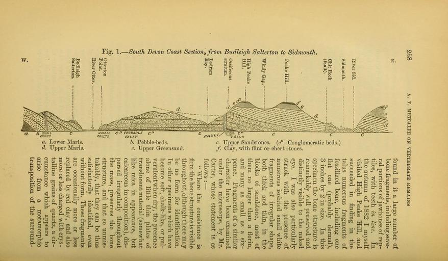 MAKE A MEME View Large Image The Quarterly journal of the Geological Society of London (14072601671).jpg 258 <br> A T METCALPE ON VERTEBEATE REMAINS <br> EiTer Sid <br> Sidmouth <br> Chit Eock <br> fault <br> Peake Hill <br> Windy Gap - <br> /'il <br> i I <br> Ik <br> ...