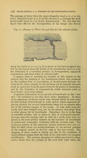 | Keywords: The Quarterly journal of the Geological Society of London (13937369872).jpg 532 MAJOR-GENERAL C A m'MAHON ON THE HORNBLENDE-SCHISTS <br> a tabular form of the result of the microscopic examination of some <br> samples of them collected by me <br> No <br> Locality from which the <br> specimens were taken <br> Pentreath Beach H <br> ditto H <br> Pen Voose H <br> ditto \R <br> Cadgwith iH <br> ditto H <br> Pen Voose H <br> Pentreath H <br> Flag-staff Quarry Cadgwith H <br> Pen Voose H <br> Kennack Cove H <br> Pen Voose H <br> ditto <br> ditto <br> Flag-staff Quarry Cadgwith <br> ditto <br> Pentreath <br> Kennack Cove \ <br> ditto <br> 7i <br> Q Mi <br> Q Mi <br> QjMi <br> Q Mi <br> QjMi <br> Q Mi <br> Q Mi <br> Mi <br> I Mi <br> I Mi <br> <br> Q Mi <br> Q ' Mi <br> Q Mi <br> Q Mi <br> QMi <br> Mi <br> Mi <br> Mi <br> -2 <br> -+j <br> c3 <br> J3 <br> P- <br> P <br> <br> w <br> Ap <br> Sph <br> Ap <br> Sph <br> Ap <br> Sph <br> Ap <br> Sph <br> Ap Sph <br> Ap Sph <br> Ap Sph <br> Ap <br> Ap Sph <br> ;;; s P h <br> Ma <br> Ma <br> Ma <br> Ma <br> Ma <br> Ma <br> Ma <br> Ap <br> Ap Sph Ma <br> Ap Sph <br> Ap Sph Ma <br> Ma <br> Ap <br> Chi <br> Chi <br> cm <br> Chi <br> w <br> w <br> f w <br> Granites undoubtedly intrusive in the Granulitic group <br> Pen Voose <br> ditto <br> Cadgwith <br> ditto <br> 'F Q <br> F Q <br> F Q <br> 122316 <br> Mi <br> Mi <br> Mi <br> Mi <br> 22 <br> Ap <br> Ap <br> Ap <br> Ap <br> IS <br> 12 <br> 10 <br> f Indicates that these specimens are more or less foliated <br> b Specimens taken from black bands in the granulitic rocks <br> w Specimens taken from white bands in the granulitic rocks <br> Felspar it will be observed is common to all the specimens It <br> forms the base in which the other minerals are imbedded and here <br> and there it exhibits the twinning of plagioclase It is generally <br> more or less decomposed but it is occasionally water-clear <br> The felspar in all these rocks affords more or less evidence of <br> incipient saussurization round patches opaque in transmitted light <br> and of pearly white colour in reflected light have been formed here <br> and there which have no definite relation to the shape of the crystals <br> containing them Possibly the granular appearance often given to <br> the rock by these white spots may have suggested the term granu- <br> lite If so it simply denotes the progress of decay and gives no <br> clue to the original structure of the rock <br> Mica is another mineral found in all but one of the samples <br> The predominant type is a mica at one end of the scale and a chlorite <br> at the other ; but it is often difficult to say regarding the interme- 36940361 113696 51125 Page 530 Text 45 http //www biodiversitylibrary org/page/36940361 1889 Geological Society of London Biodiversity Heritage Library The Quarterly journal of the Geological Society of London v 45 1889 Geology Periodicals Smithsonian Libraries bhl page 36940361 dc identifier http //biodiversitylibrary org/page/36940361 smithsonian libraries Information field Flickr posted date ISOdate 2014-04-21 Check categories 2015 August 26 CC-BY-2 0 BioDivLibrary https //flickr com/photos/61021753 N02/13937369872 2015-08-26 05 52 42 cc-by-2 0 PD-old-70-1923 The Quarterly journal of the Geological Society of London 1889 Photos uploaded from Flickr by Fæ using a script |