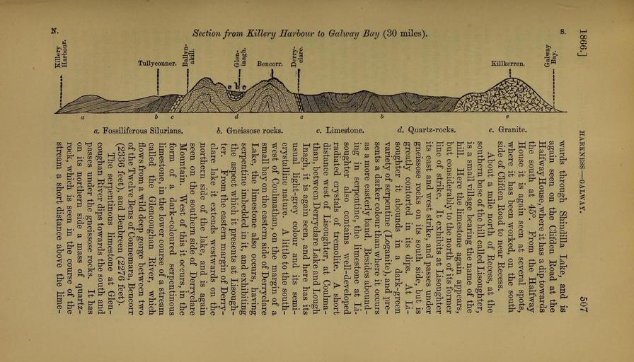 | Keywords: The Quarterly journal of the Geological Society of London (13935603312).jpg 1866 <br> HAEKNESS ” GALAVA r <br> 607 <br> b <br> M <br> <br> o <br> o <br> wards through Shindilla Lake and is <br> again seen on the Clifden Eoad at the <br> Halfway House where it has a dip towards <br> the south at 45° Prom the Halfway- <br> House it is again seen at several spots <br> where it has been worked on the south <br> side of Clifden Eoad to near Recess <br> About a mile north of Recess at the <br> southern base of the hill called Lisoughter <br> is a small village bearing the name of the <br> hill Here the limestone again appears <br> but considerably to the north of its former <br> line of strike It exhibits at Lisoughter <br> its east and west strike and passes under <br> gneissose rocks on its south side but is <br> greatly contorted in its dips At Li- <br> soughter it abounds in a dark-green <br> variety of serpentine Loganite and pre- <br> sents a darker colour than where it occurs <br> as a more easterly band Besides abound- <br> ing in serpentine the limestone at Li- <br> soughter also contains well- developed <br> radiated crystals of tremolite A short <br> distance west of Lisoughter at Coulma- <br> thau between Derryclare Lake and Lough <br> Inagh it is again seen and here has its <br> usual light -grey colour and its semi- <br> crystalline nature A little to the south- <br> west of Conlmathan on the margin of a <br> small bay on the eastern side of Derryclare <br> Lake the limestone also occurs having <br> serpentine imbedded in it and exhibiting <br> the aspect which it presents at Lisough- <br> ter Prom the eastern margin of Derry- <br> clare lake it extends westwards on the <br> northern side of the lake and is again <br> seen on the southern side of Derryclare <br> Mountain West of this it occurs in the <br> form of a dark-coloured serpentinous <br> limestone in the lower course of a stream <br> called the Glencoughan River which <br> flows from a wild deep gorge between two <br> of the Twelve Bens of Connemara Bencorr <br> 2336 feet and Benbreen 2276 feet <br> The serpentinous limestone at Glen- <br> coughan River dips towards the south and <br> passes under the gneissose rocks It has <br> on its northern side a mass of quartz- <br> rock which is seen in the course of the <br> stream a short distance above the lime- 36164960 111477 51125 Page 507 Text v 22 http //www biodiversitylibrary org/page/36164960 1866 Geological Society of London Biodiversity Heritage Library The Quarterly journal of the Geological Society of London v 22 1866 Geology Periodicals Smithsonian Libraries bhl page 36164960 dc identifier http //biodiversitylibrary org/page/36164960 smithsonian libraries Information field Flickr posted date ISOdate 2014-04-21 Check categories 2015 August 26 CC-BY-2 0 BioDivLibrary https //flickr com/photos/61021753 N02/13935603312 2015-08-26 06 52 04 cc-by-2 0 PD-old-70-1923 The Quarterly journal of the Geological Society of London 1866 Photos uploaded from Flickr by Fæ using a script |