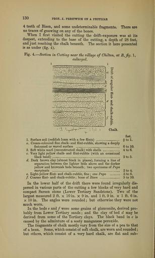 | Keywords: The Quarterly journal of the Geological Society of London (13860099414).jpg 130 <br> PEOF J PEESTWICH ON A PECULIAE <br> 4 teeth of Bison and some undeterminable fragments - There are <br> no traces of gnawing on any of the bones <br> When I first visited the cutting the drift- exposure was at its <br> deepest extending to the base of the cutting a depth of 28 feet <br> and just reaching the chalk beneath The section it here presented <br> is as under fig 4 <br> Fig 4 ” Section in Catting near the village of Chilton at B fig 1 <br> enlarged <br> 0 <br> 1 1 L_ h- \ -- i Chalk <br> 1 v <br> feet <br> 1 Surface soil reddish loam with a few flints £ to 1 <br> a Cream-coloured fine chalk- and flint-rubble showing a deeply <br> festooned or waved surface 6 to 10 <br> b Soft white marl reconstructed chalk with shells 4 to 6 <br> c Very light yellow chalk- and flint-rubble with an occasional <br> black band 2 to 5 <br> d Dark brown clay almost black in places forming a line of <br> separation between the lighter beds above and the darker <br> yellow and brownish beds beneath ; two specimens of Pupa <br> marginata 2 to 4 <br> e Light-yellow flint- and chalk-rubble fine ; one Pupa 3 to 6 <br> / Coarser flint- and chalk-rubble ; bone of Bison 5 to 10 <br> In the lower half of the drift there were found irregularly dis- <br> persed in various parts of the cutting a few blocks of very hard and <br> compact Sarsen stone Lower Tertiary Sandstone Two of the <br> largest measured 2 ft x 10 in x 9 in and 1 ft 9 in x 1 ft 6 in <br> X 10 in The angles were rounded ; but otherwise they were not <br> much worn <br> In the beds c and / were some grains of glauconite derived pro- <br> bably from Lower Tertiary sands ; and the clay of bed d may be <br> derived from some of the Tertiary clays The black band in c is <br> caused by the admixture of a sooty manganese peroxide <br> The fragments of chalk mostly vary from the size of a pea to that <br> of a bean Some which consist of soft chalk are worn and rounded ; <br> but others which consist of a very hard chalk are flat and sub- 36935901 113692 51125 Page 130 Text 38 http //www biodiversitylibrary org/page/36935901 1882 Geological Society of London NameFound Pupa marginata NameConfirmed Pupa marginata Draparnaud 1801 Biodiversity Heritage Library The Quarterly journal of the Geological Society of London v 38 1882 Geology Periodicals Smithsonian Libraries bhl page 36935901 dc identifier http //biodiversitylibrary org/page/36935901 smithsonian libraries Information field Flickr posted date ISOdate 2014-04-15 Check categories 2015 August 26 CC-BY-2 0 BioDivLibrary https //flickr com/photos/61021753 N02/13860099414 2015-08-26 07 53 52 cc-by-2 0 PD-old-70-1923 The Quarterly journal of the Geological Society of London 1882 Photos uploaded from Flickr by Fæ using a script |