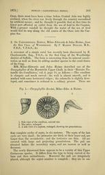 | Keywords: The Quarterly journal of the Geological Society of London (13369196113).jpg 1873 <br> DUNCAN CARYOPHYLLIA BREDAI <br> 503 <br> Oxus there must have been a time before Central Asia was highly <br> civilized when the river ran freely through the country unconfined <br> by artificial means ; and he thought it possible that at that time its <br> lower part afforded an outlet from the sea of Aral to the Caspian <br> With a greater rainfall he thought the water of the sea of Aral <br> would find its way along the old course of the Oxus into the Cas- <br> pian Sea <br> 2 On Caryophyllia Bredai Milne-Edwards Jules Haime from <br> the Red Crag of Woodbridge By P Martin Duncan M B <br> F R S V P G S c <br> A specimen of a simple coral has recently been discovered by E <br> Charlesworth Esq F G S in the Red Crag of the Woodbridge <br> district of Suffolk The form is interesting from its mineral consti- <br> tution as well as from its adding another species to the coral-fauna <br> of the Crag <br> MM Milne-Edwards and Jules Haime described one of the <br> Caryophyllia of the Maestricht Upper Chalk in their ' Histoire Na- <br> turelle des Coralliaires ' vol ii page 18 as follows ” The corallum <br> is elongate and much curved ; the wall is almost smooth and is <br> marked with some horizontal ridges ; the columella is slightly deve- <br> loped and sometimes is reduced to a solitary process There are <br> Fig 1 ” Caryophyllia Bredai Milne-Edw Haime <br> 1 2 3 <br> 1 Side view of the corallum natural size <br> 2 The calice enlarged <br> 3 A side view of a septum enlarged showing the granulations <br> four complete cycles of septa in six systems The septa of the last <br> cycle are very small ; the primaries are thick at their inner end are <br> larger than the secondaries ; and the tertiarics are thin All are <br> covered with large and projecting granulations The pali are <br> situated before the secondary septa and are narrow as well as <br> flexuous <br> The newly discovered form appears to be a variety of this Upper <br> Cretaceous species It differs from the type in being curved at the <br> base and then subturbinatc Moreover the pali are irregularly <br> placed although the septal number is complete ; they are in one 39051441 120601 51125 Page 503 Text v 29 http //www biodiversitylibrary org/page/39051441 1873 Geological Society of London NameFound Caryophyllia NameConfirmed Caryophyllia EOLID 11129596 NameBankID 2566615 NameFound Caryophyllia bredai NameConfirmed Caryophyllia bredai Biodiversity Heritage Library The Quarterly journal of the Geological Society of London v 29 1873 Geology Periodicals Smithsonian Libraries bhl page 39051441 dc identifier http //biodiversitylibrary org/page/39051441 smithsonian libraries Information field Flickr posted date ISOdate 2014-03-24 Check categories 2015 August 26 CC-BY-2 0 BioDivLibrary https //flickr com/photos/61021753 N02/13369196113 2015-08-26 10 51 47 cc-by-2 0 PD-old-70-1923 The Quarterly journal of the Geological Society of London 1873 Photos uploaded from Flickr by Fæ using a script |