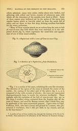 | Keywords: The Quarterly journal of the Geological Society of London (13365490143).jpg 1850 MANTELL ON THE GEOLOGY OF NEW ZEALAND <br> 325 <br> others spherical ; many were entire whilst others were broken and <br> glittering with yellow and brown crystals of calcareous spar with <br> which all the interstices of the septaria were lined or filled Some <br> of these masses were hollowed out by the action of the waves into <br> regular basins which at low-tide stand up from the sands full of <br> water and are three or four feet deep forming excellent foot-baths <br> for the weary pedestrian <br> Many of these septaria struck me as curious from the zone or belt <br> of cone-in-cone clay with which they were encircled as in the sub- <br> joined sketch fig 6 which represents the usual form and appear- <br> ance of one of these zoned nodules <br> Fig 6 ” Septarium with a zone of Cone-in-cone Clay <br> Fig 7 ” Section of a Septarium from Onekakara <br> a a Spherical body of the <br> Septarium <br> b Fragment of bone imbed- <br> ded in the Septarium <br> Fig 7 is a section of the same exhibiting the cone-like structure <br> The direction of the apices of the cones is towards the centre of the <br> nodule ; the coating of the other part of the sphere fig 6 a a is <br> composed of clay with crystals of selenite ; the cones are represented <br> disproportionately large to render the structure intelligible These <br> septaria with the exception of the belt of cone-in-cone clay are so <br> like those I recollect seeing extracted from the London clay off the <br> coast of Sussex and used for Roman cement that I think they may <br> be applicable to the same economical purpose I gave some to Capt <br> CoUinson R E who had it burnt and ground by a mason who pro- <br> nounced it worthless ; but I still put faith in my cement and not <br> in the lime-burner <br> A portion of one of these nodules has through the kindness of Sir Henry De <br> la Beche been analysed at the laboratory of the Museum of Practical Geology ; 36934186 113689 51125 Page 325 Text v 6 http //www biodiversitylibrary org/page/36934186 1850 Geological Society of London NameFound Septarium Biodiversity Heritage Library The Quarterly journal of the Geological Society of London v 6 1850 Geology Periodicals Smithsonian Libraries bhl page 36934186 dc identifier http //biodiversitylibrary org/page/36934186 smithsonian libraries Information field Flickr posted date ISOdate 2014-03-23 Check categories 2015 August 26 CC-BY-2 0 BioDivLibrary https //flickr com/photos/61021753 N02/13365490143 2015-08-26 10 55 35 cc-by-2 0 PD-old-70-1923 The Quarterly journal of the Geological Society of London 1850 Photos uploaded from Flickr by Fæ using a script |