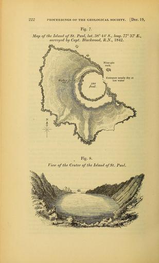 | Keywords: The Quarterly journal of the Geological Society of London (13365556744).jpg 222 PROCEEDINGS OF THE GEOLOGICAL SOCIETY DeC 19 <br> Fig 7 <br> Map of the Island of St Paul lat 38° 44' S long IT 37' E <br> surveyed by Capt Blackwood R N 1842 <br> Nine- pin <br> rock <br> Entrance nearly dry at <br> low water <br> Fig <br> View of the Crater of the Island of St Paul 36934073 113689 51125 Page 222 Text v 6 http //www biodiversitylibrary org/page/36934073 1850 Geological Society of London Biodiversity Heritage Library The Quarterly journal of the Geological Society of London v 6 1850 Geology Periodicals Smithsonian Libraries bhl page 36934073 dc identifier http //biodiversitylibrary org/page/36934073 smithsonian libraries Information field Flickr posted date ISOdate 2014-03-23 Check categories 2015 August 26 CC-BY-2 0 BioDivLibrary https //flickr com/photos/61021753 N02/13365556744 2015-08-26 12 01 59 cc-by-2 0 PD-old-70-1923 The Quarterly journal of the Geological Society of London 1850 Photos uploaded from Flickr by Fæ using a script |