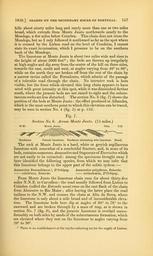 | Keywords: The Quarterly journal of the Geological Society of London (13365430884).jpg 1849 SHARPE ON THE SECONDARY ROCKS OF PORTUGAL 157 <br> hills about ninety miles long and rarely more than one or two miles <br> broad which extends from Monte Junto northwards nearly to the <br> Mondego a few miles below Coimbra This chain does not cross the <br> Mondego but as I only followed it northwarrl as far as the spot where <br> it is crossed by the Lisbon road on the level of Condeixa I cannot <br> state its exact termination which I presume to be on the southern <br> bank of the Mondego <br> The limestone at Monte Junto is about two miles wide and rises to <br> the height of about 2000 feet ; the beds are thrown up irregularly <br> at high angles and dip away from the centre of the hill on three sides <br> towards the east south and west at angles varying from 40 to 80° ; <br> while on the north they are broken oif from the rest of the chain by <br> a narrow ravine called the Ferradouro which admits of the passage <br> of a tolerable road through the chain No intrusive rock is here <br> visible but the force which elevated this long chain appears to have <br> acted with great intensity at this spot while it was diminished farther <br> south where the Jurassic beds are not raised to sight and the subcre- <br> taceous rocks are less disturbed The section No 6 fig 7 shows the <br> position of the beds at Monte Junto the effect produced at Alhandra <br> which is the most southern point to which this elevation can be traced <br> may be seen in section No 4 fig 5 at p 152 <br> Fig 7 <br> Section No 6 Across Monte Junto 15 miles <br> N W Monte Junto Otta S E <br> Sandstone Jurassic limestone Sandstone alternating with limestone Marsh <br> The rock at Monte Junto is a hard white or greyish argillaceous <br> limestone with somewhat of a conchoidal fracture and in some of its <br> beds contains numerous A nmonites and fragments of Enc 'inites which <br> are not easily to be extracted among the specimens brought away I <br> have identified the following species from which we may infer that <br> this limestone belongs to the upper part of the oolitic system ” <br> Ammonites Boucaultiamis ' D'Oriigny Ammonites polyplocus Reinecke <br> colubrinus Reinecke tortisuleatus B Orhigny <br> From Monte Junto the limestone chain runs for about thirty-five <br> miles N N E to Carvalhos the road usually followed from Lisbon to <br> Coimbra called the Estrada nova runs on the east flank of the chain <br> from Alcoentre to Rio Maior ; after leaving the latter place the road <br> inclines to the N W and crosses the chain at Alto da Serra where <br> the limestone is only about a mile broad and of inconsiderable eleva- <br> tion The limestone beds here dip at angles of 60° to 70° to the <br> eastward and are broken through by a mass of trap as is shown in <br> section No 7 fig 8 and the Jurassic limestone is overlaid uncon- <br> formably on both sides by sands of the subcretaceous formation which <br> are elevated where they rest on the limestone to angles varying from <br> 20° to 30° <br> There is an establishment at the top for collecting ice for the supply of Lisbon 36933982 113689 51125 Page 157 Text v 6 http //www biodiversitylibrary org/page/36933982 1850 Geological Society of London NameFound AmMONITES polyplocus NameFound Boucaultiamis NameFound Estrada nova NameFound Maior NameConfirmed Maior NameBankID 5332597 Biodiversity Heritage Library The Quarterly journal of the Geological Society of London v 6 1850 Geology Periodicals Smithsonian Libraries bhl page 36933982 dc identifier http //biodiversitylibrary org/page/36933982 smithsonian libraries Information field Flickr posted date ISOdate 2014-03-23 Check categories 2015 August 26 CC-BY-2 0 BioDivLibrary https //flickr com/photos/61021753 N02/13365430884 2015-08-26 12 01 27 cc-by-2 0 PD-old-70-1923 The Quarterly journal of the Geological Society of London 1850 Photos uploaded from Flickr by Fæ using a script |